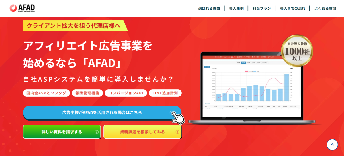 ADXIAは、今回紹介したワンタグ機能を備えていませんが、アフィリエイト広告の運用効率向上が可能なSaaS型マーケティング支援ツールです。