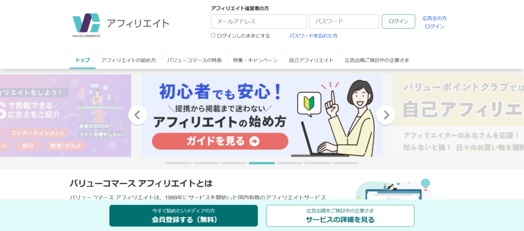 金融や旅行ジャンルに強く、誰もが知る大手ネット証券の案件実績が豊富なASPがバリューコマースです。手数料比較や銘柄分析といった専門的な検索ワードで上位を独占する、パワーのある比較サイトが多く参加しています。適当なブログではなく、作り込まれたメディア経由で獲得できるため、資産形成への本気度が高いユーザーを集めやすいのが特徴です。