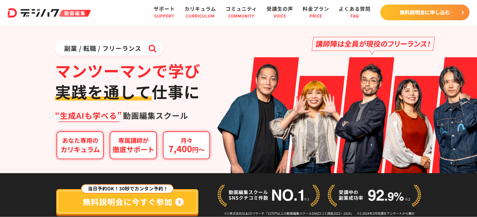 デジハクは、動画編集と生成AIをマンツーマンで学べるオンラインスクールです。
