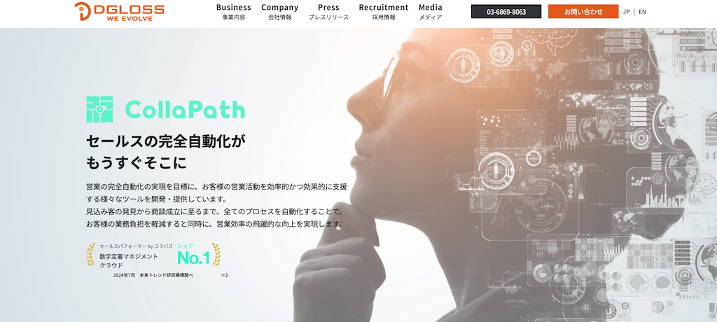 ディグロス株式会社の「CollaPath」は、営業活動を“ほぼ丸ごと自動化”するAIセールスツールです。