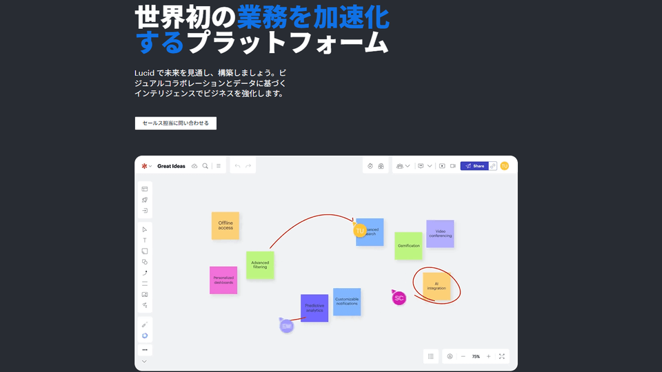 Lucid Softwareは、思考整理や情報共有を支援するクラウド型のビジュアルツールを提供しています。