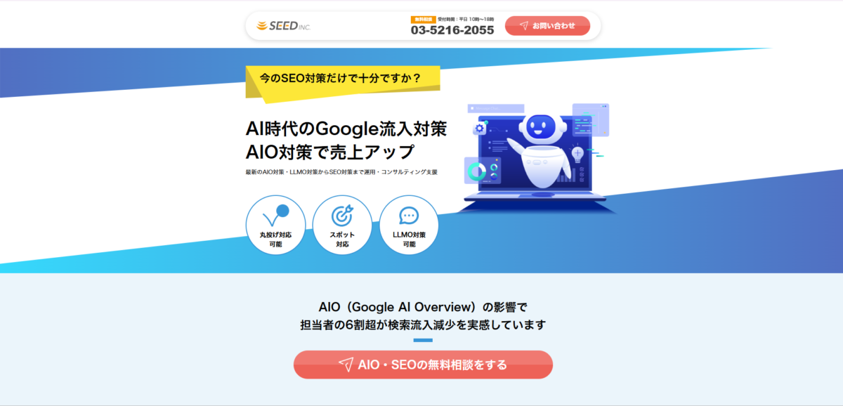弊社株式会社シードには最先端のAIO・LLMO対策から基礎となるSEOまで、一括でサポートできる強みがあります。
