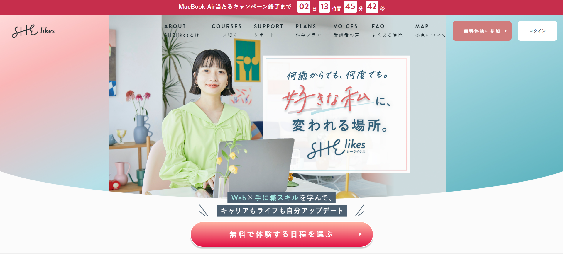 | SHElikes | 女性向けキャリア支援/45以上のスキル | レギュラープラン 250,800円+入会金88,000円 スタンダードプラン 月額16,280円〜+入会金162,800円 |