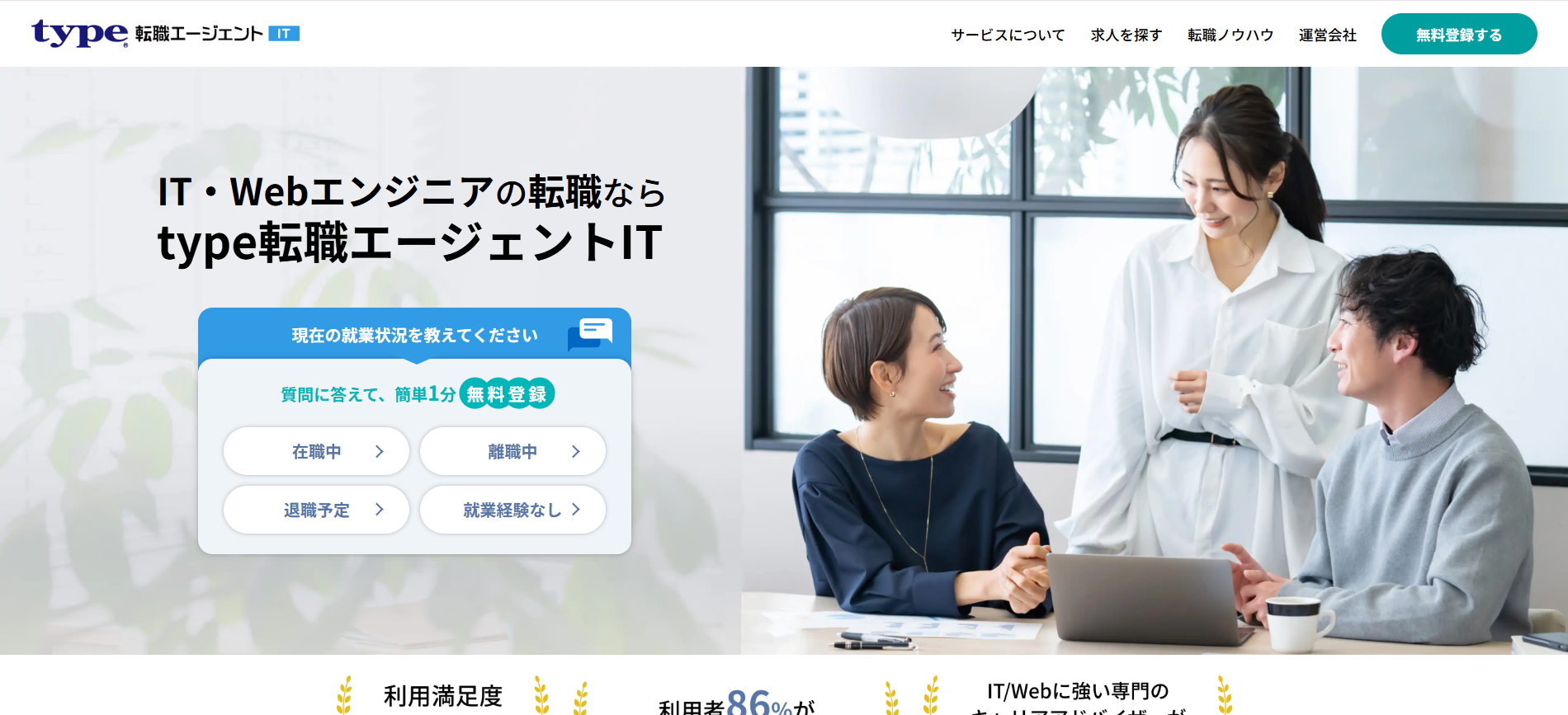 完全無料で転職活動をサポート |