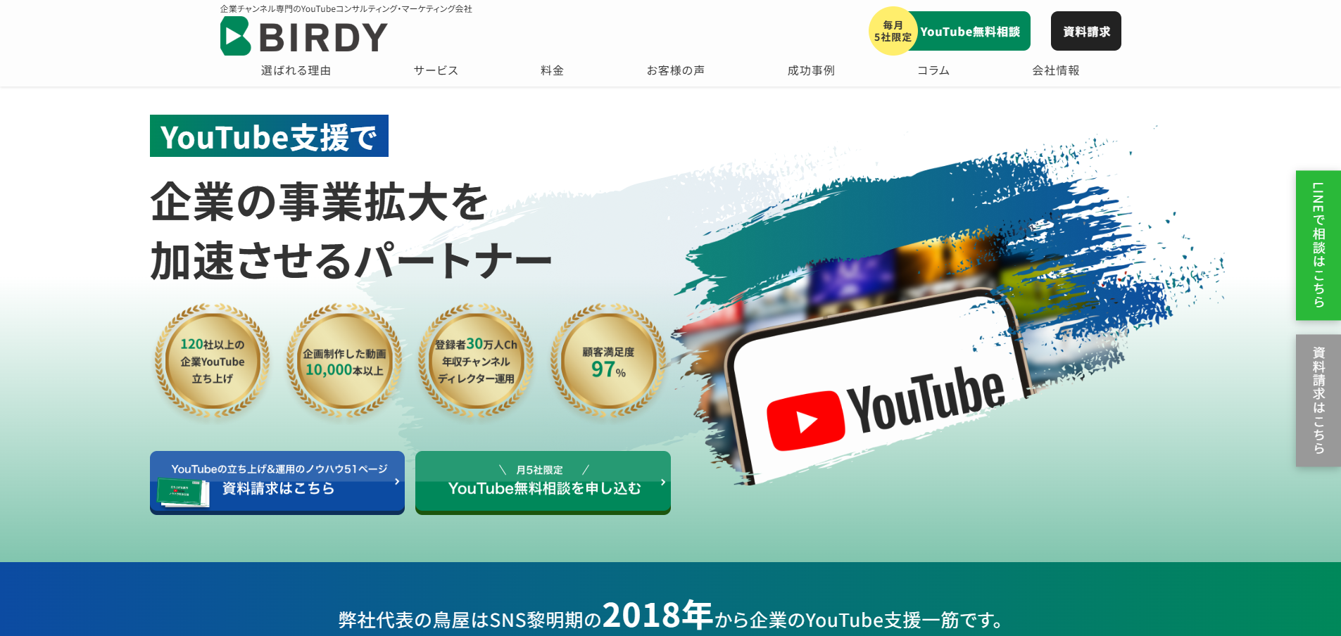| 実績 | 大手企業を中心に数多くの公式チャンネル管理を長年継続中 |